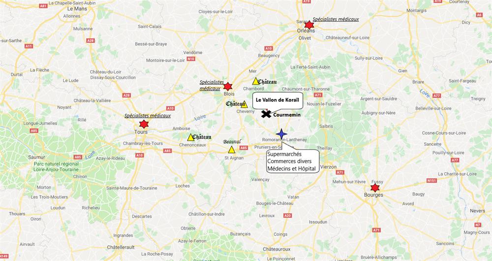 Il vous est possible de rejoindre le lieu par la route (A71 sortie 3 Neung sur Beuvron depuis Paris ou A85 sortie 14 Romorantin-Lanthenay depuis le Sud de la France)